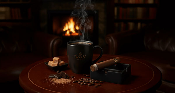 Perfect Pairing: Don V Maduro Cigar — full-bodied and indulgent, with chocolate and espresso notes of its own. When paired with the Dark Roast, the two resonate like bass and drum, powerful yet harmonious.